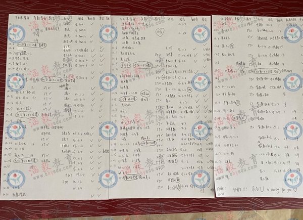 就....就结束了,快到我不敢相信,雪姐真的同意我报北师了?我出门之后不敢相信我又推开门进去问,雪姐你确定吗,她笑了。回学校之后我就赶紧报了名,虽然还是很紧张,但是老师都同意了,她说行我就行,我一直给自己积极的心理暗示,让自己不要有压力,继续奋斗。回去以后就每周写一套北师的真题,找遗漏的知识点、找思路、找逻辑。真题一定要练,不光是知识点,还有格式和字,因为自主命题是发的空白页,没有了横线以及边框,你如果放飞自我写题,那分数也会让你摔的很惨,一定要左右上下都留白,然后题目之间也要有间隙不要挤成一团,一页纸上分配好,写四个名词解释,两道简答,辨析也可以写两道,大题以页半到两页,就是养成习惯合理安排,上考场自然也很舒服。