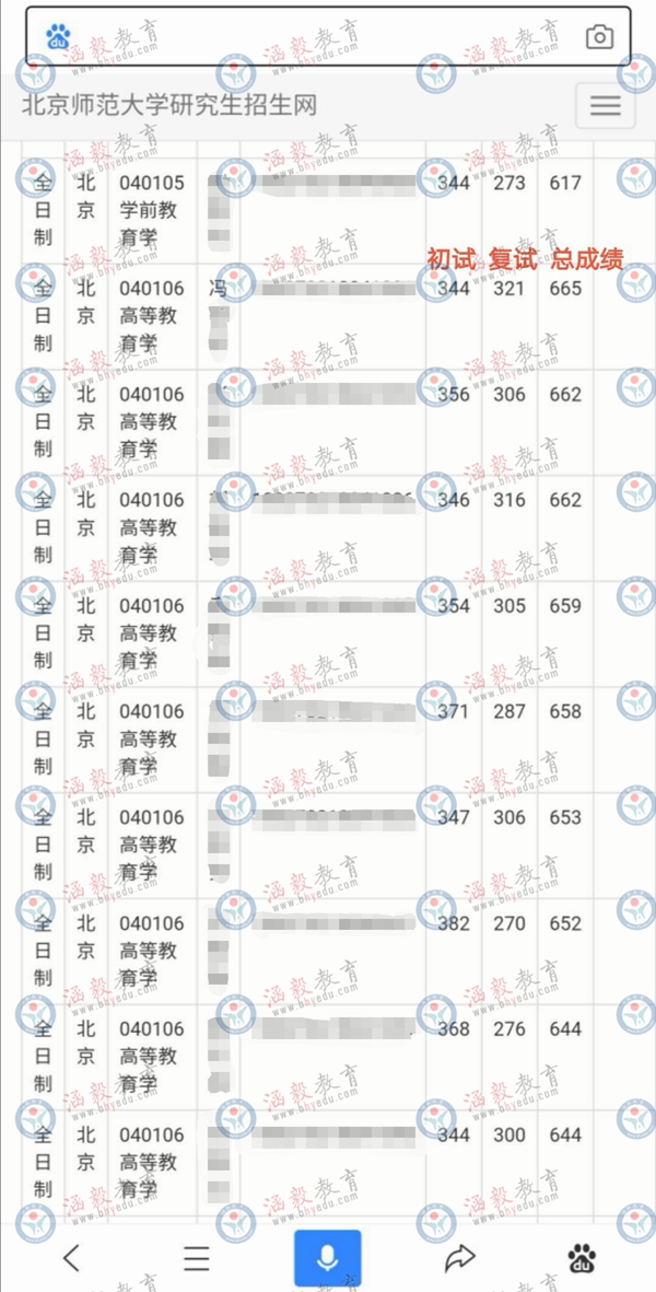 考研确实是一件需要努力和运气的事。初试344分的我,以最后一名——这个既幸运又危险的成绩进了复试,最后以第一名的总成绩被我的一志愿——北京师范大学高等教育学专业录取。