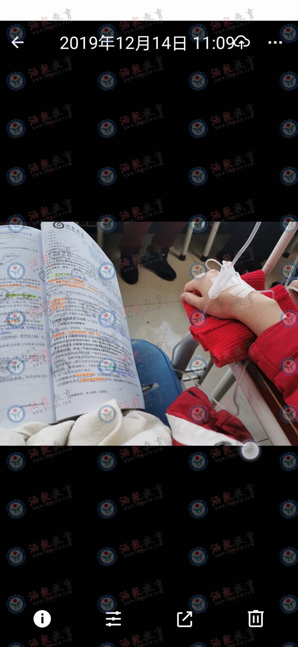 首先,是心态上的崩溃。其次,是身体上的不适。怎么办呢?这时候又要感谢一次姜雪老师了,她说我是那种“能顺利答完题就能考上研的孩子”,让我这几天“别挺着”,我突然有了一种“涵毅的孩子不能输”的心情,打了一周多的吊瓶之后,像一个战士一样上了考场。虽然这个“战士”的战斗力确实弱了很多,但,没有当逃兵。
