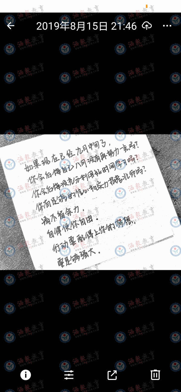 我是一个有点慢吞吞、总是后知后觉的人,用东北话说就是“总是赶不上趟”。包括此时我正在写的这篇考研心得,如果不是姜雪老师的提醒,我就错过了这个分享的机会…就是这样一个后知后觉的我,神奇般地在2019年6月27日,自己在网上搜到了涵毅的学员经验分享,那瞬间仿佛看到了二战的“救命稻草”,然后当机立断地联系了姜雪老师,并且当天下午坐了二十几站公交,“冲”到了涵毅办公室。在办公室第一次见到了姜雪老师,见到了我的亲学姐喆喆姐,和她们交流之后,我对涵毅的感觉就是:靠谱。